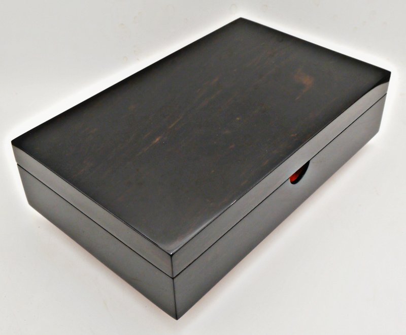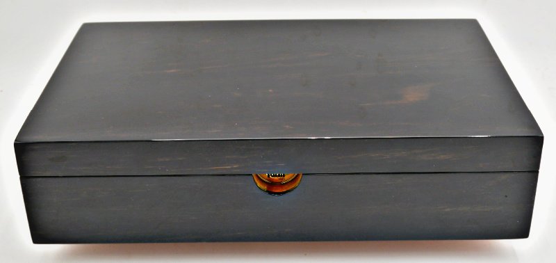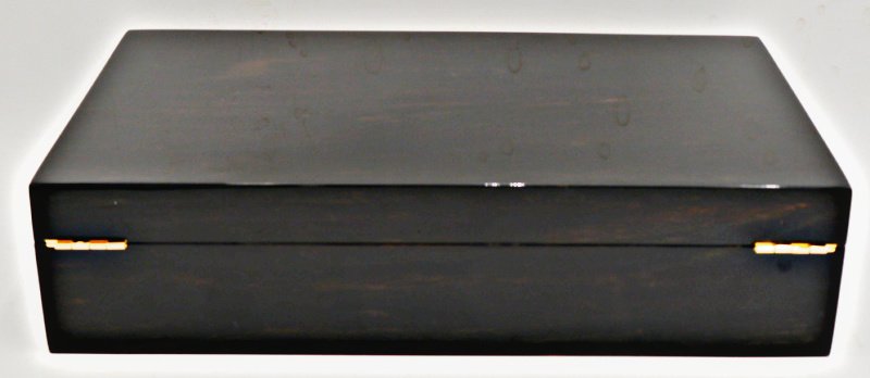 This is an immaculate piece of Gabon Ebony. The very definition of luxury. This quality of ebony is very difficult to find. . This finish on this humidor is a new high gloss that can only be described as the brilliance of a Steinway piano. It is like black glass. It looks like polished onyx. This new category of humidors was made to offer a new level of eloquence to the most demanding luxury seeking customers.