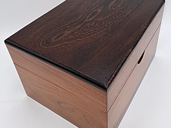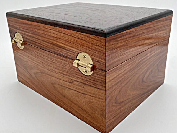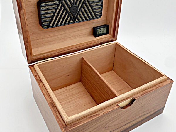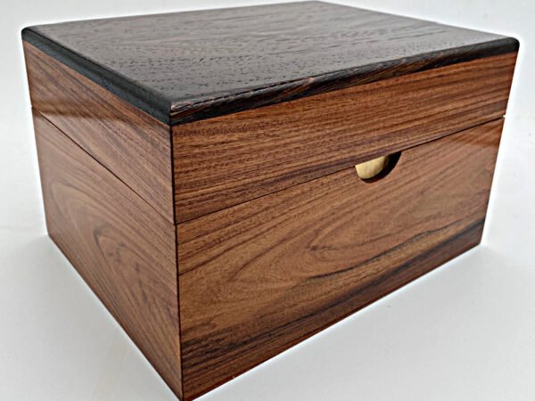 This is Honduran Rosewood with a Interesting piece of Wenge on top.All solid wood humidor with a Spanish Cedar lining and all Brass hardware.