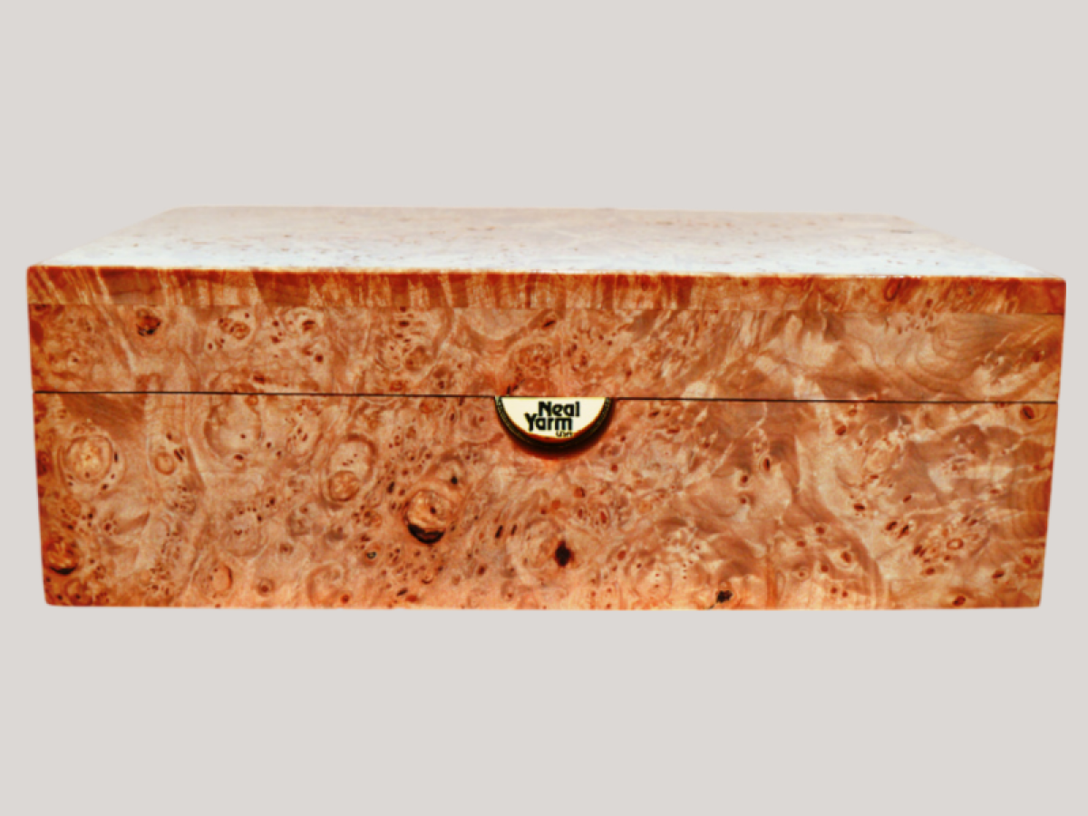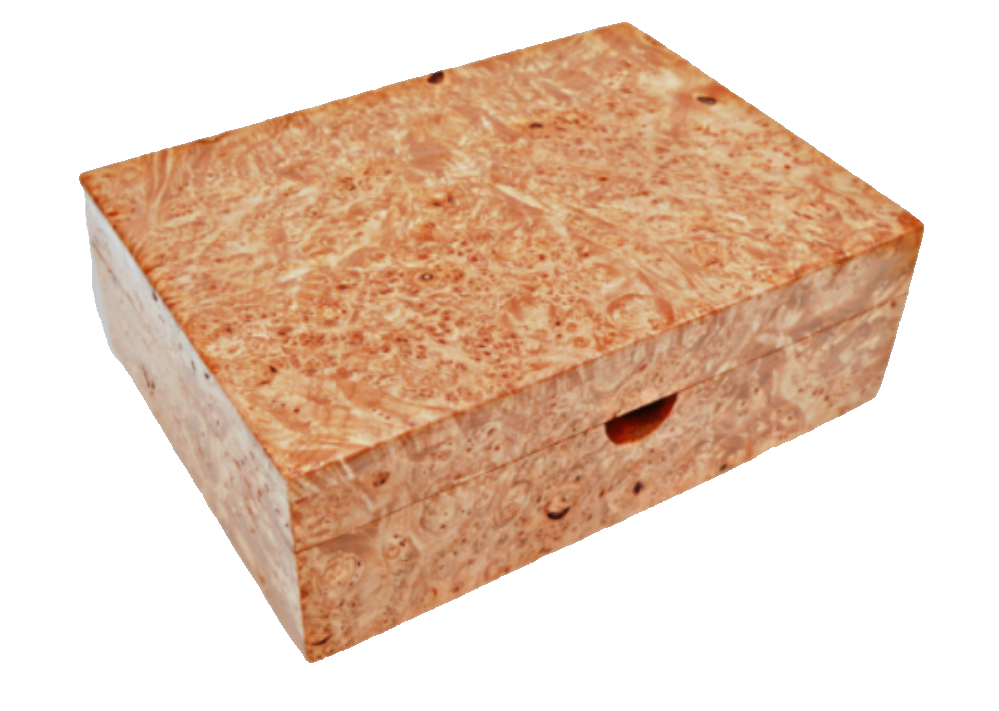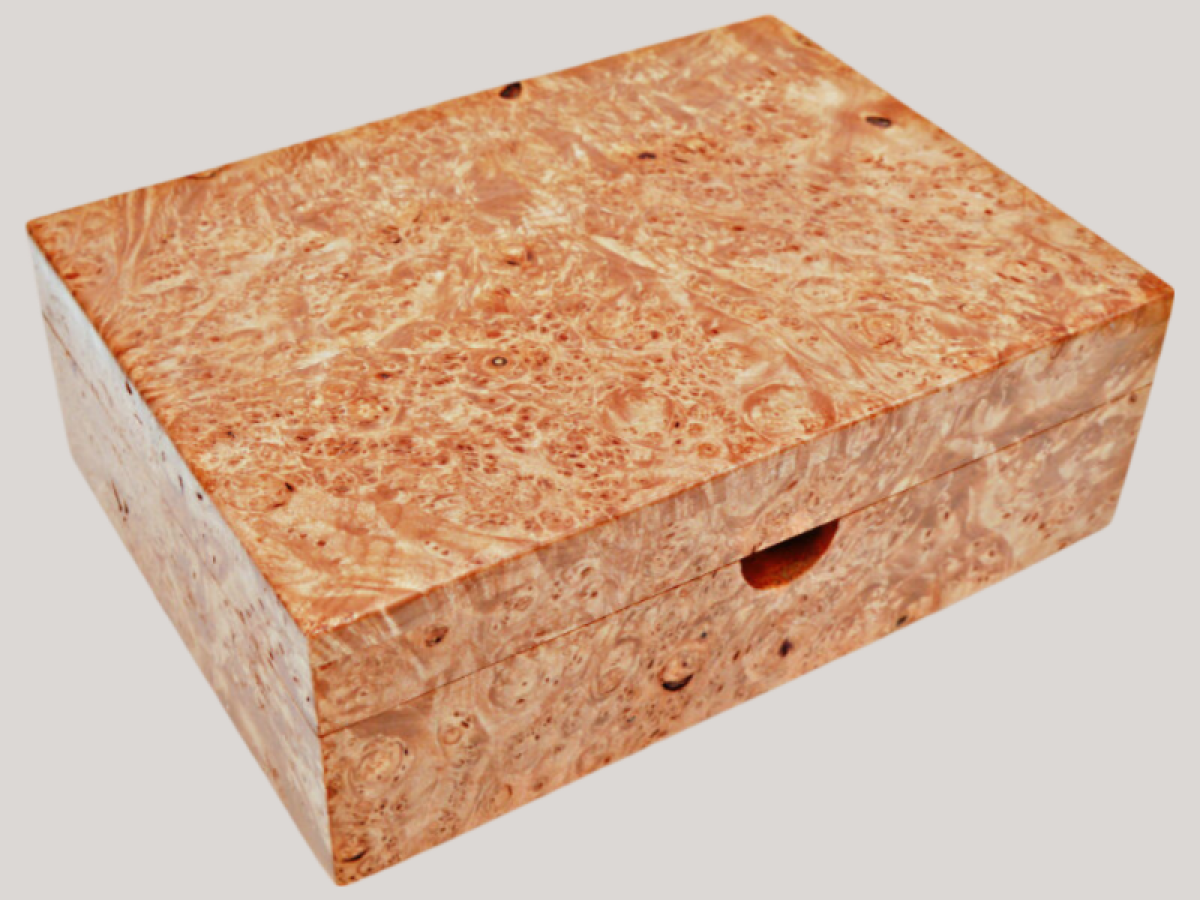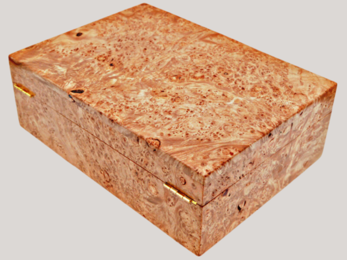 Amazing piece of solid Maple Burl. Warm rich color.Spanish Cedar lined and solid brass hardware