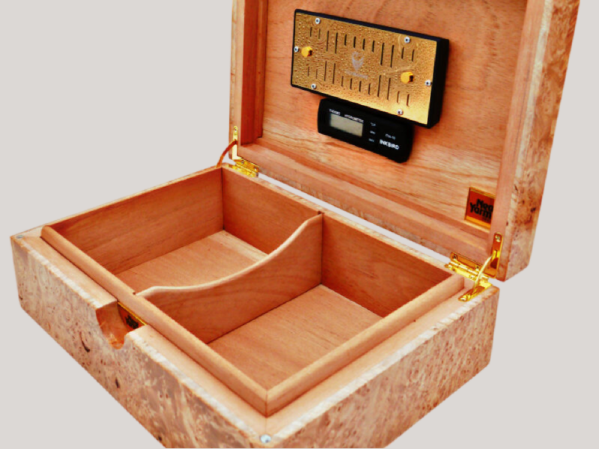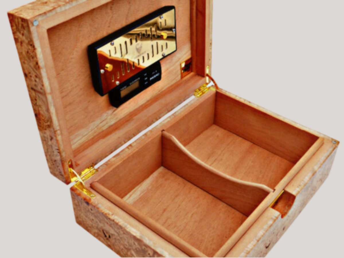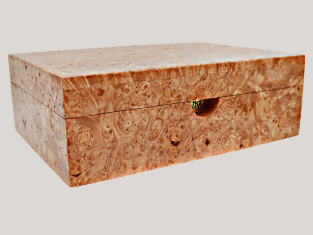 Amazing piece of solid Maple Burl. Warm rich color.Spanish Cedar lined and solid brass hardware