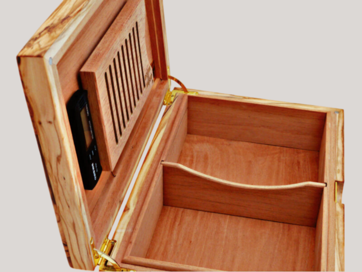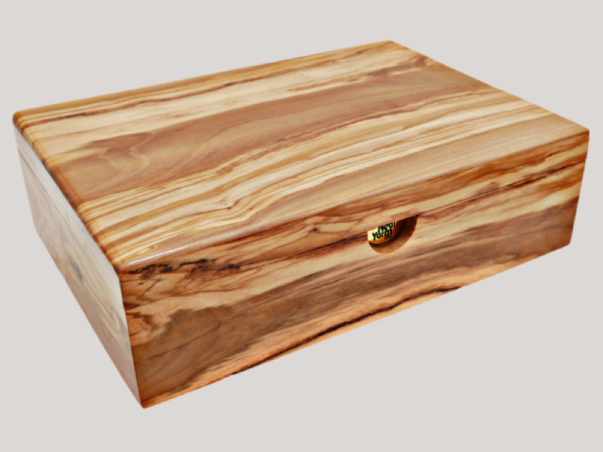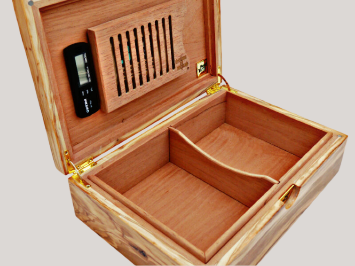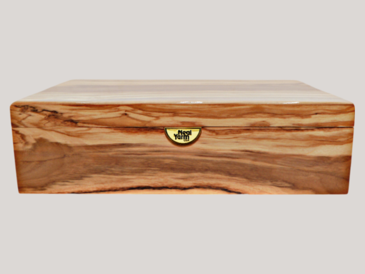 Interesting piece of full grain Olive wood. Warm rich color.Spanish Cedar lined and solid brass hardware