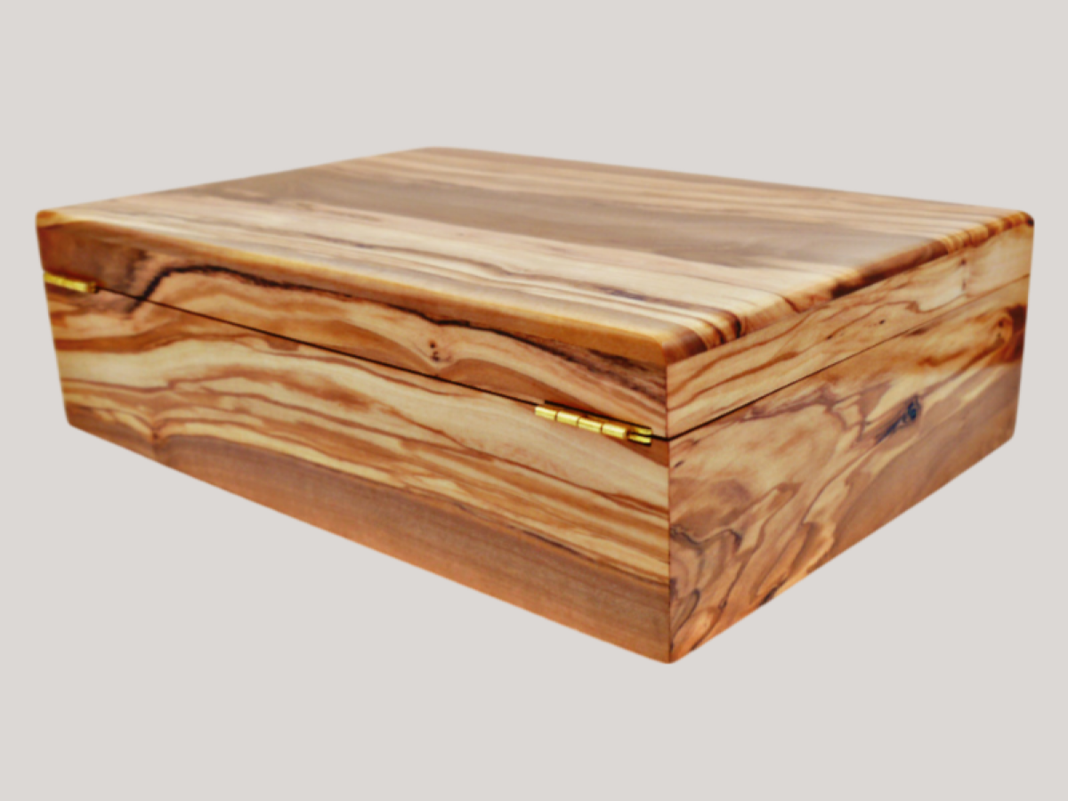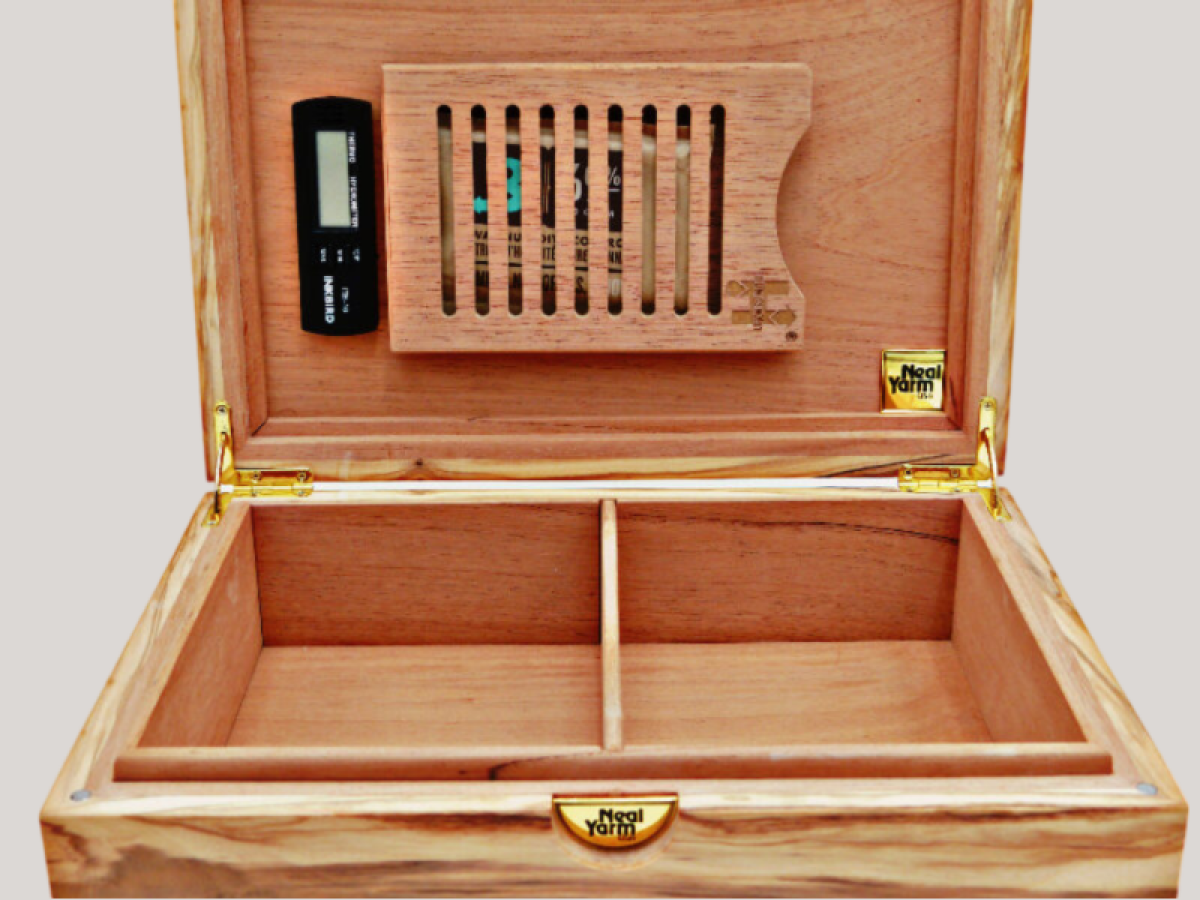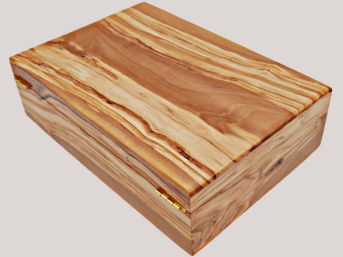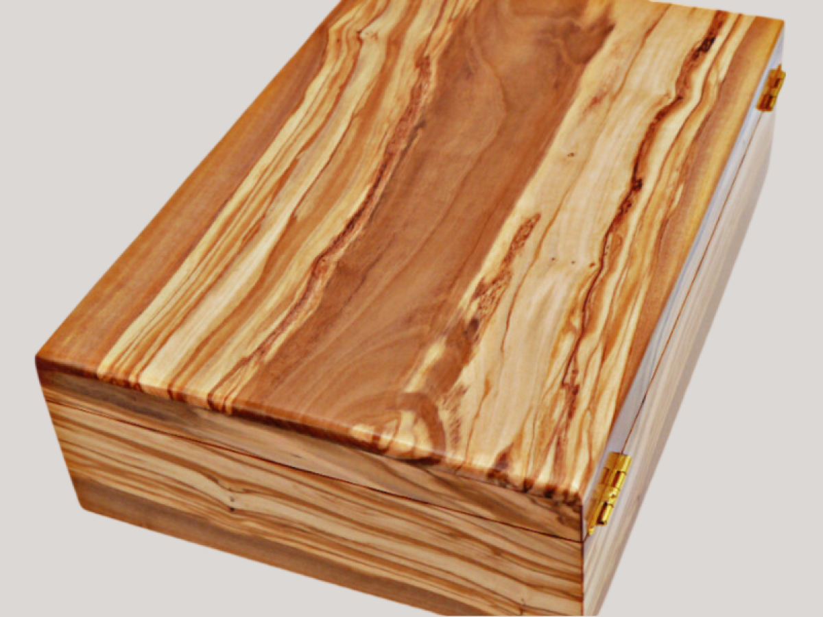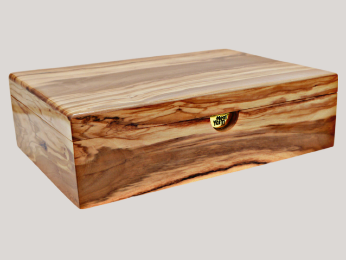 Interesting piece of full grain Olive wood. Warm rich color.Spanish Cedar lined and solid brass hardware